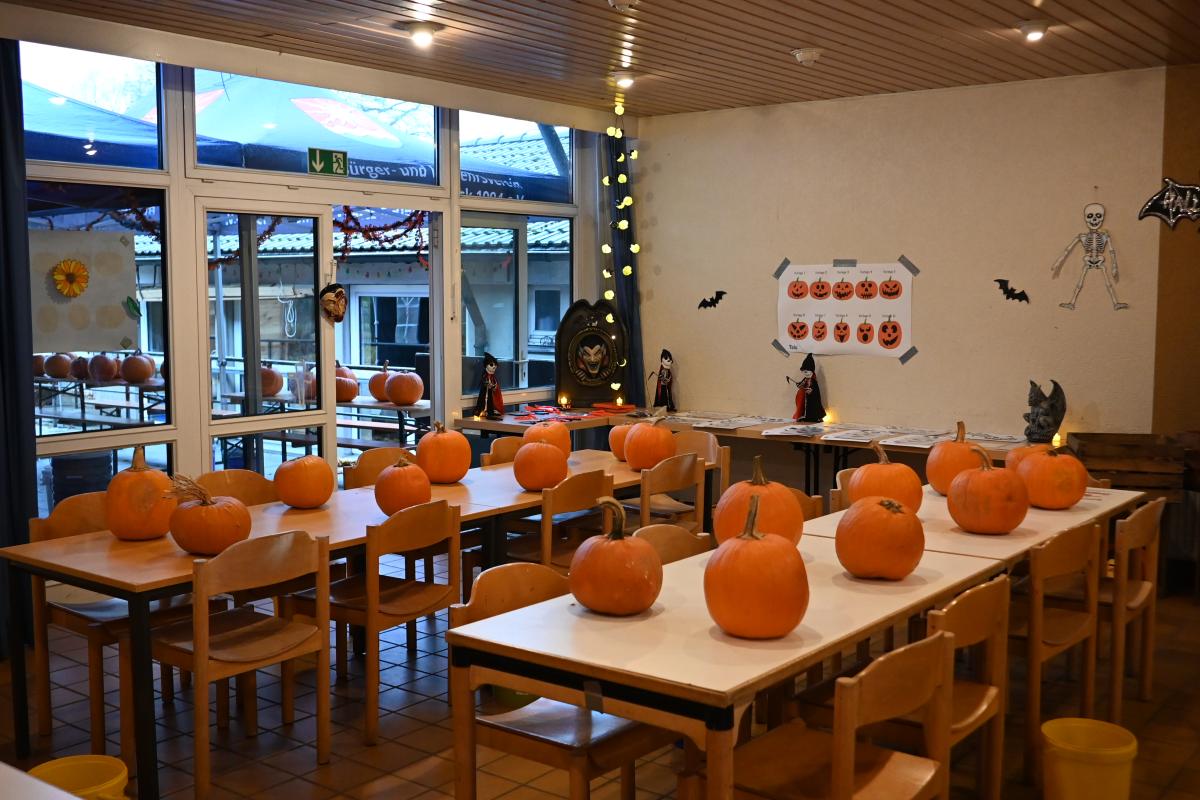 Verrückte Fratzen wurden in die Kürbisse geritzt und für die Halloweennacht am folgenden Sonntag präpariert.