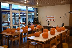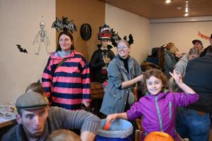 Am nächsten Sonntag spukte es auf der Dorfwiese, in den Kürbissen flackerten Kerzen und begrüßten Schaulustige und Familien mit einem schaurigen Lächeln. Der geplante Gruselweg durch die Schlucht musste aufgrund einer Sturmwarnung abgesagt werden. Spaßig war es dennoch.